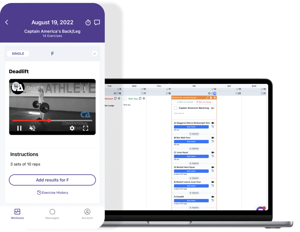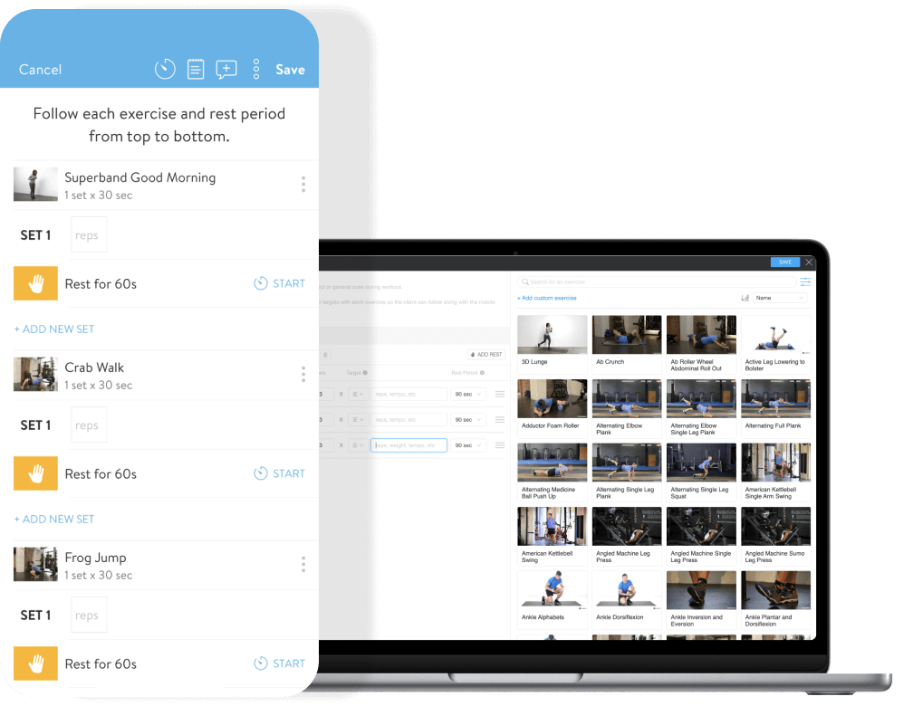 *We ran a speed test in Aug 2022 where one person with no prior workout building experience created the same workout on each platform. Calculations assumed 3 new workouts per client per workout phase, 6 week workout phases, and 20 clients per Trainer per year.